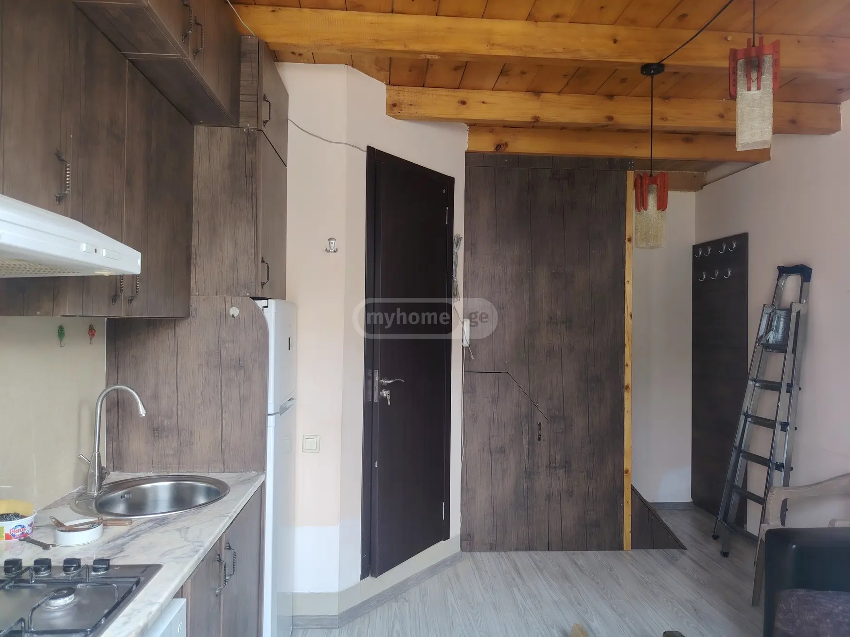 ბინის პირველ სართულზე მოწყობილია სამზარეულო, სველი წერტილი. მეორე სართულზე საძინებელია. ავეჯით და ტექნიკით უზრუნველყოფილი ბინაა. ჩაშენებულია ტევადი კარადა-სათავსოები. ცენტრალური გათბობის სისტემით.