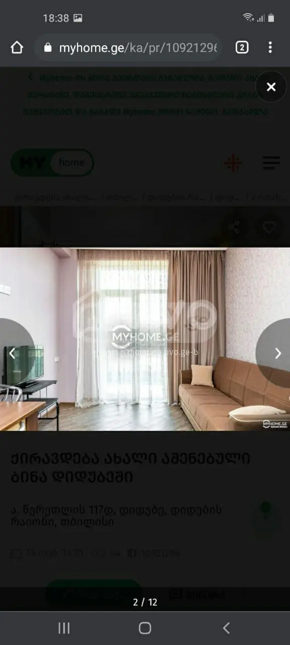 ქირავდება დღიურად 1 ოთახიანი ბინა დიღმის მასივში ID: 374166 გუშინ 08:46 currencies.currency_symbol_undefined 0 . currencies.currency_symbol_undefined0 / მ 2 ₾ $ T Tea აგენტი მიწერე 555009*** ნომრის ჩვენება ჩვენი სერვისები იურიდიული გადამოწმება გაიგე მეტი ქონების შეფასება გაიგე მეტი დიღმის მასივი - I კვარტალი , დიღმის მასივი , თბილისი გუშინ 08:46 8579-ჯერ ID: 374166 დააკოპირე ID ფართი 70მ2 ოთახი 1 სართული 1 / 12 ბმულები: 8579-ჯერ მდებარეობა დიღმის მასივი დიღმის მასივი - I კვარტალი აღწერა ქირავდება დღიურად ახალი გარემონტებულა ბინა დიღმის მასივში. მახასიათებლები მახასიათებლები ბუნებრივი აირი კი ტელევიზია კი ინტერნეტი კი ბუხარი კი ტელეფონი კი პროექტის ტიპი m2-ის კომპლექსი აივანი 1/12 მ2 სამშენებლო მასალა ბლოკი პარკირება ავტოფარეხი გათბობა ცენტრალური გათბობა ცხელი წყალი დენის გამაცხელებელი მდგომარეობა ახალი გარემონტებული სტატუსი ახალი აშენებული ჭერის სიმაღლე 280 მ სველი წერტილი 1 რამდენი ადამიანს იტევს 4 ნახე მეტი უპირატესობები სიგნალიზაცია ლიფტი ვინტილაცია დაცვა ჯაკუზი ავეჯი და ტექნიკა კონდინციონერი ავეჯი სამეზობლო დახურვა მიმდებარედ ყველა აფთიაქი ფიტნესი მაღაზია / კვება სხვადასხვა სკოლა