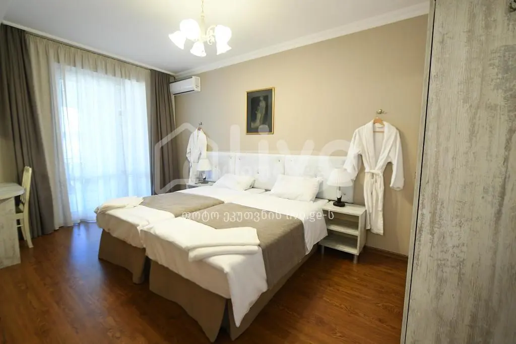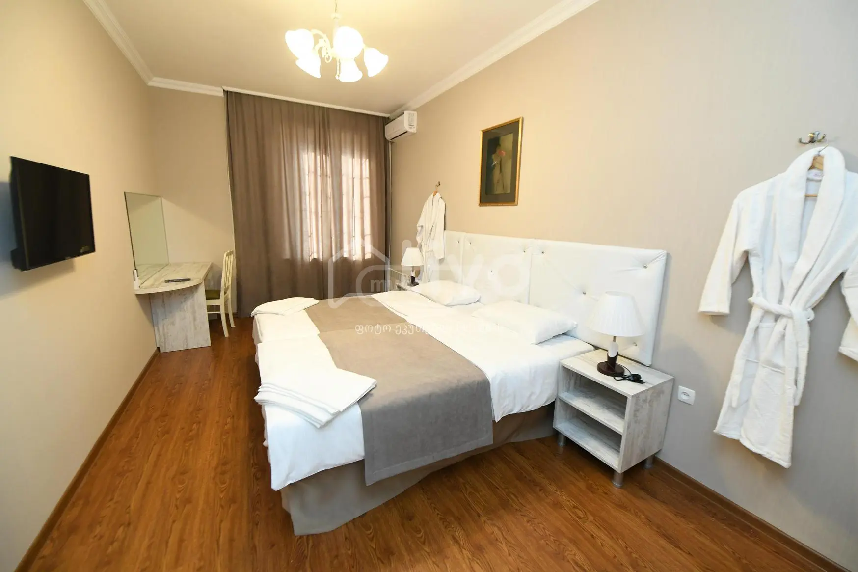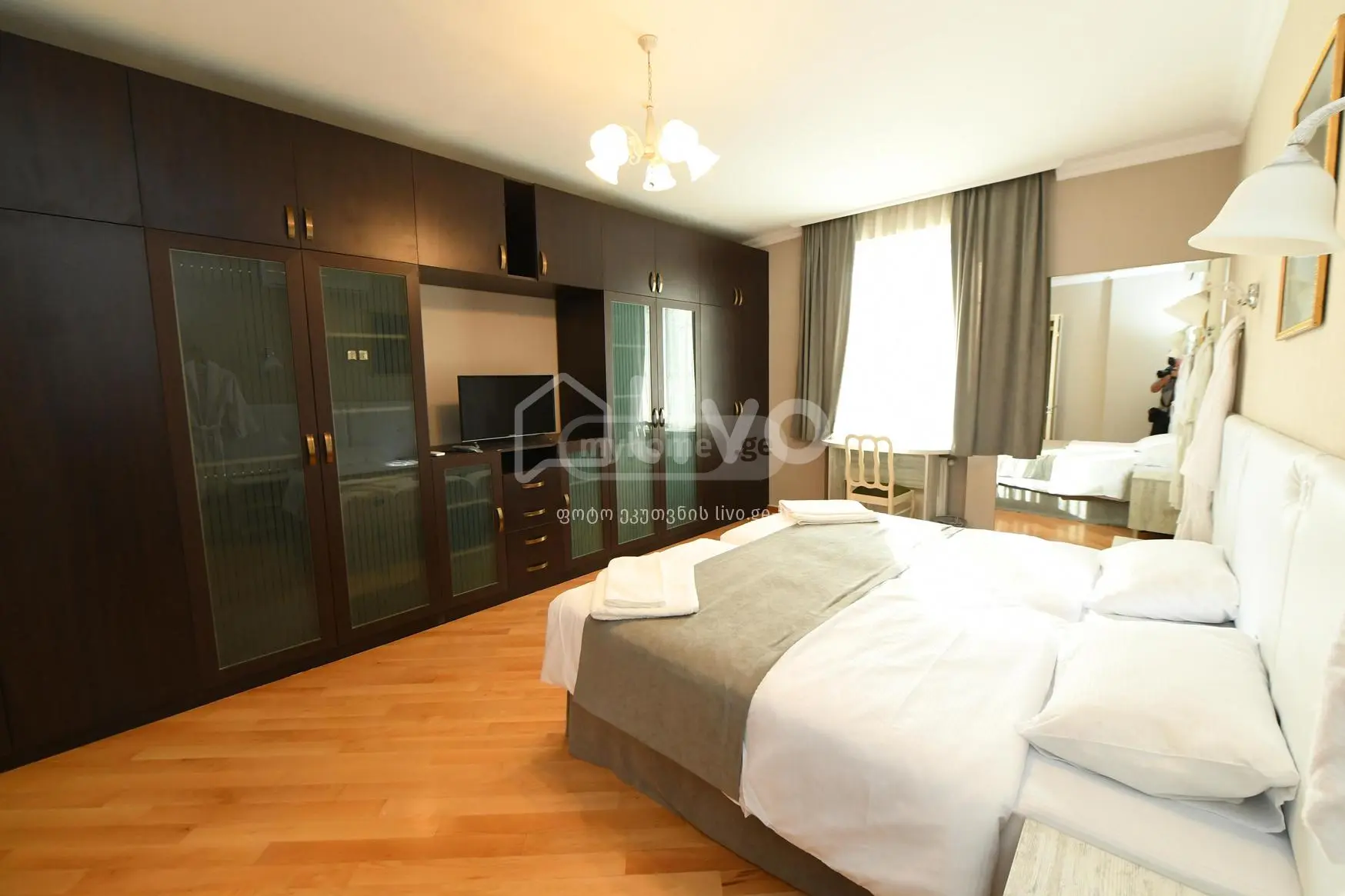 ქირავდება დღიურად!!! 6 ოთახიანი გარემონტებული საუკეთესო ბინა, 300კვ.მ საბურთალოზე გაზაფხულის ქუჩაზე ახალაშენებულ კორპუსში, აქვს დიდი მისაღები ოთახი ბუხრით, 5 საძინებელი ოთახი( ყველა ოთახს აქვს კონდენციონერი), 2 საძინებელ ოთახს აქვს თავისივე აბაზანა-ტუალეტი, სულ აქვს 4 სველი წერტილი, ავეჯით, ტექნიკით, აქვს ლამაზი აივანიები.