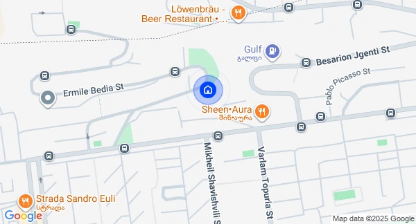 Only a 7–8 minute walk from Vazha-Pshavela metro station.